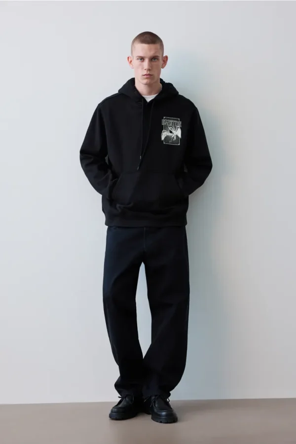 Long-sleeved hoodie in midweight sweatshirt fabric with a soft brushed inside. Kangaroo pocket, double-layered drawstring hood with a wrapover front, and ribbing at the cuffs and hem. Regular fit for comfortable wear and a classic silhouette