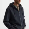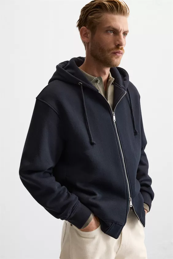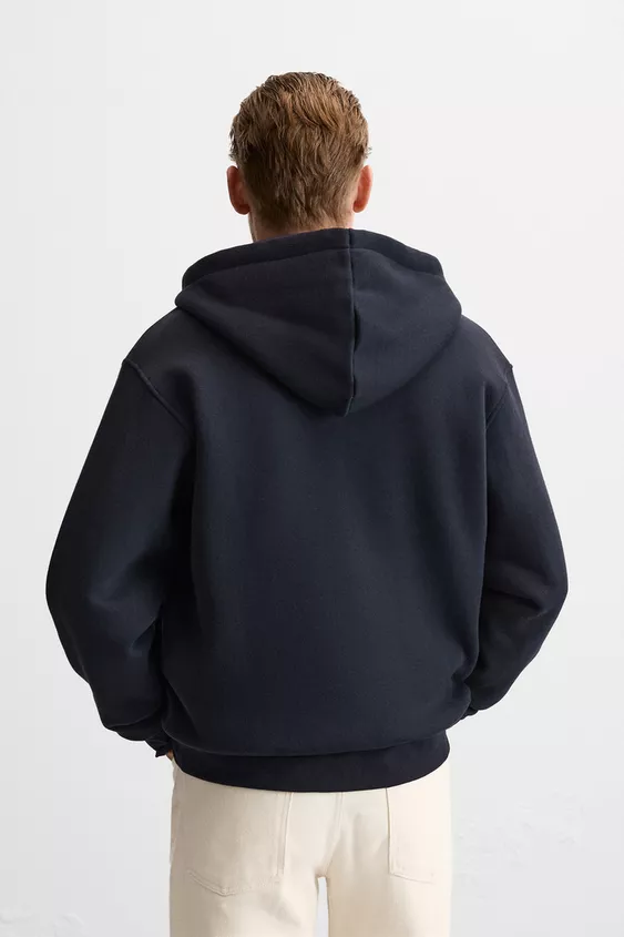 Hoodie sweatshirt made of cotton with brushed interior. Collar with adjustable hood and long sleeves. Welt pockets at hip. Rib trim. Front zip closure.